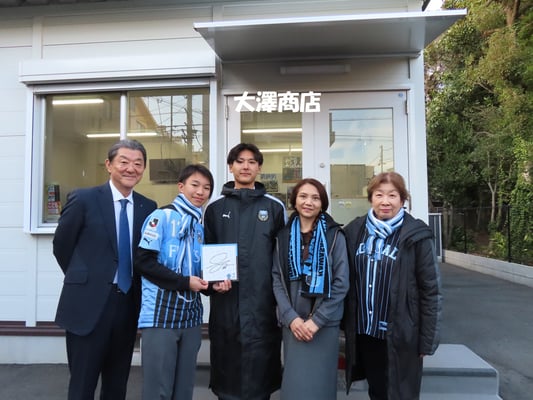 川崎フロンターレ恒例の商店街選手挨拶に3年目の神田奏真(そうま)選手がお出でになりました。